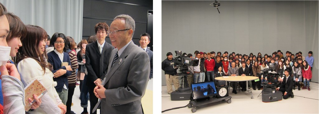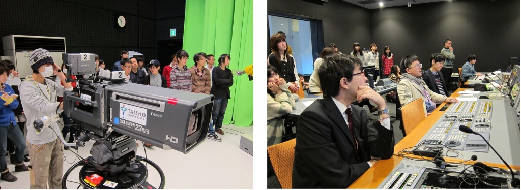 大正大学自慢のプロ使用のスタジオが活躍します。機材を操る学生もすっかりプロの顔付きです。