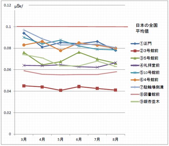 今後の対応を検討しつつ、この測定を継続して実施し、学生、教職員の安全確保に努めて参ります。