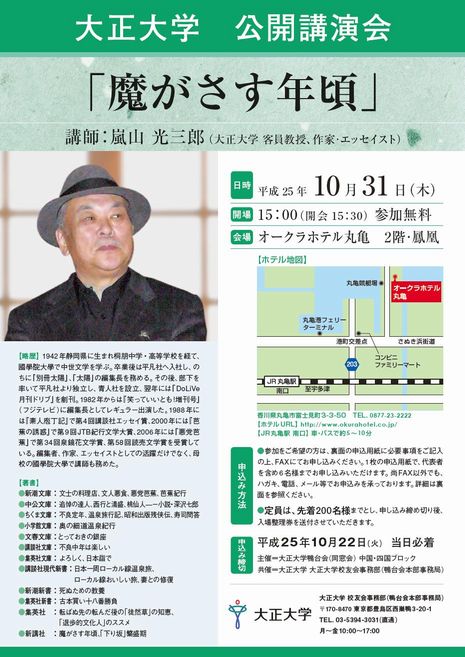 講 師:嵐山 光三郎 先生(大正大学客員教授、作家・エッセイスト)