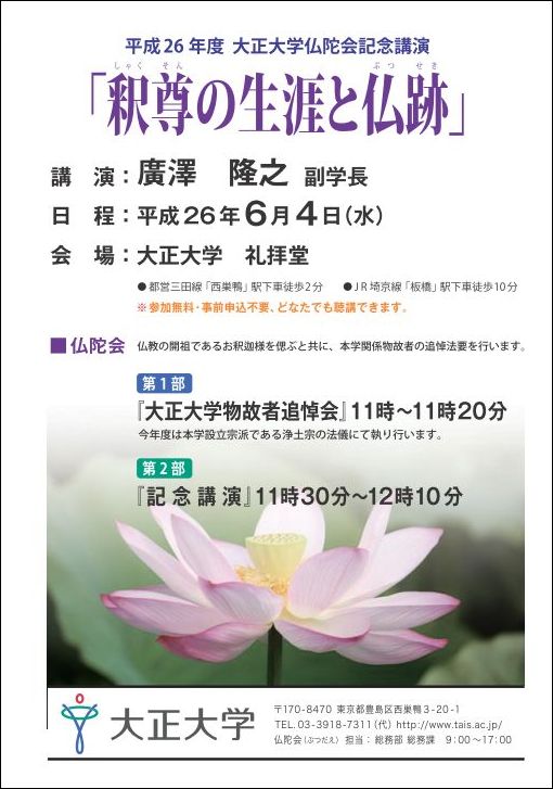 平成26年度仏陀会を下記のとおり挙行いたします。