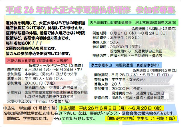 平成26年度大正大学夏期仏教研修道場参加者募集のお知らせ