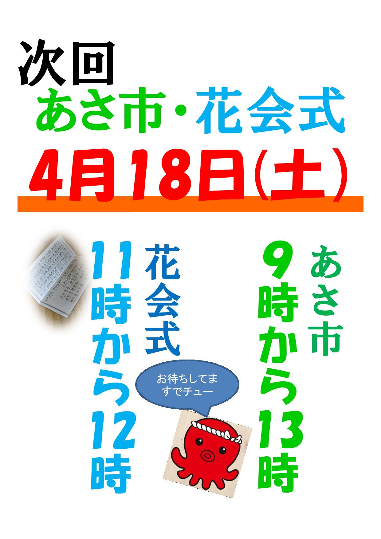 4月の「あさ市」「花会式」は以下の日程で開催いたします。