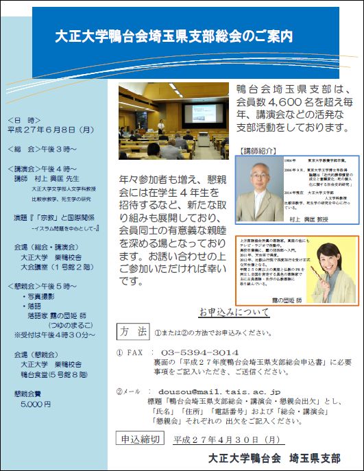 鴨台会埼玉県支部総会開催のお知らせ