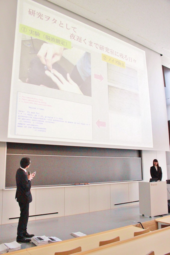 午後2時、小嶋副学長の挨拶のあと、各ゼミの代表者がじゃんけんで発表順を决め、それぞれ丁寧に用意したハンドアウトやプレゼンテーションスライドを用いて、規定時間を充分に使って、プレゼンテーションをおこないました。
