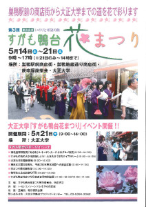 大正大学は、明日の5月14日(土)より1週間、「第3回 すがも鴨台花まつり」を開催します。明日から1週間、大正大学から巣鴨地蔵通り商店街までの道のりにバラの花を設置し、商店街を華やかに彩ります。また、花まつり最終日の5月21日(土)は大正大学巣鴨キャンパスにて、各種イベントを実施いたします。