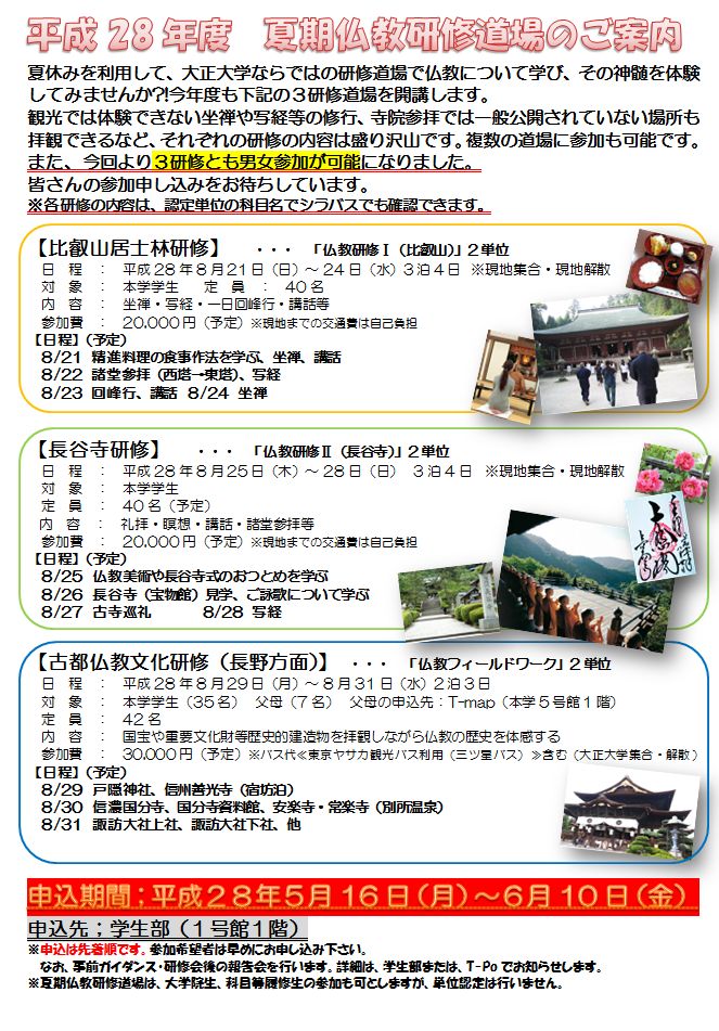 平成28年度 夏期仏教研修道場のお知らせ