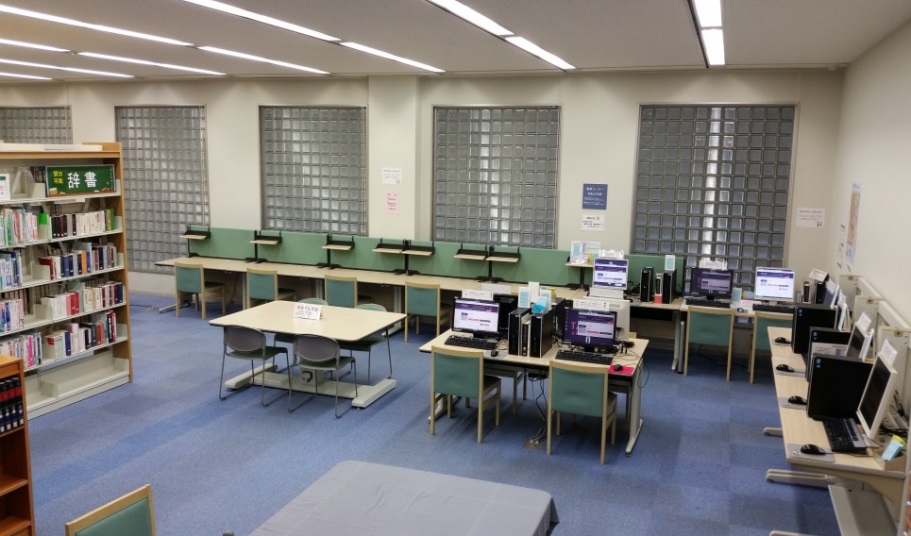 1階個人用閲覧席とスタンディング検索PCの数が増えました。