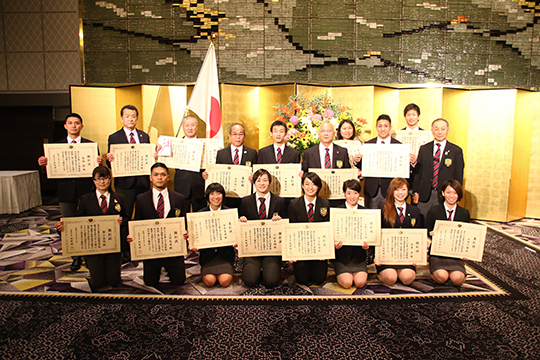 大正大学職員 新井彩可さん:国際競技大会優秀者等表彰(指導者)後列右から4番目