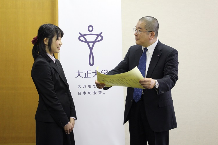 10/28に学士会館で授賞式が行われ、その表彰状を持って大塚学長を表敬訪問いたしました。