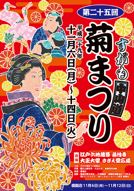 「菊まつり」は、江戸時代より園芸の里として親しまれてきた「巣鴨」の伝統文化を伝え残すとともに、街の活性化に繋げようと地元の商店会や町会が中心となって、平成5年から毎年11月初旬に開催しています。