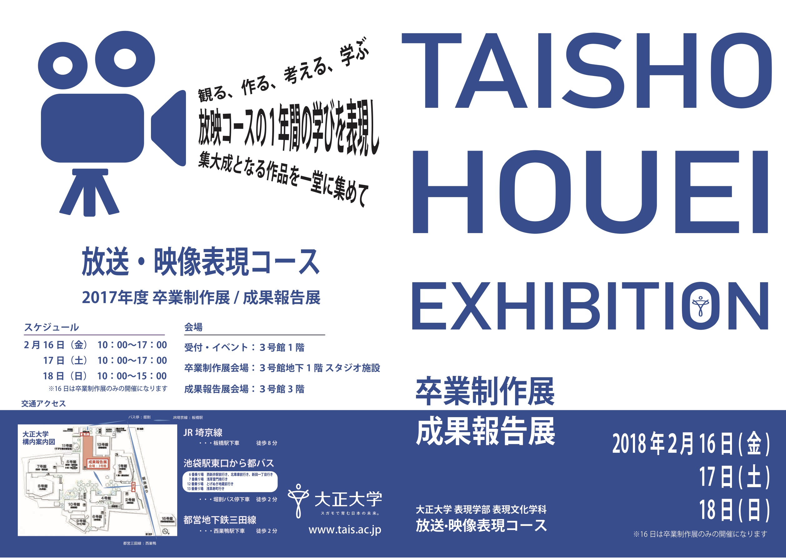 日 程:2018年2月16日(金)10:00~17:00/2月17日(土)10:00~17:00/2月18日(日)10:00~15:00会 場:受付・イベント 大正大学3号館1階(東京都豊島区西巣鴨3-20-1)