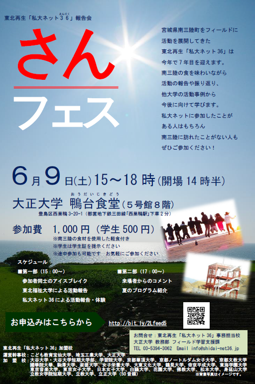 2018/6/9(土)東北再生「私大ネット36(さんりく)」報告会『さんフェス』開催のお知らせ