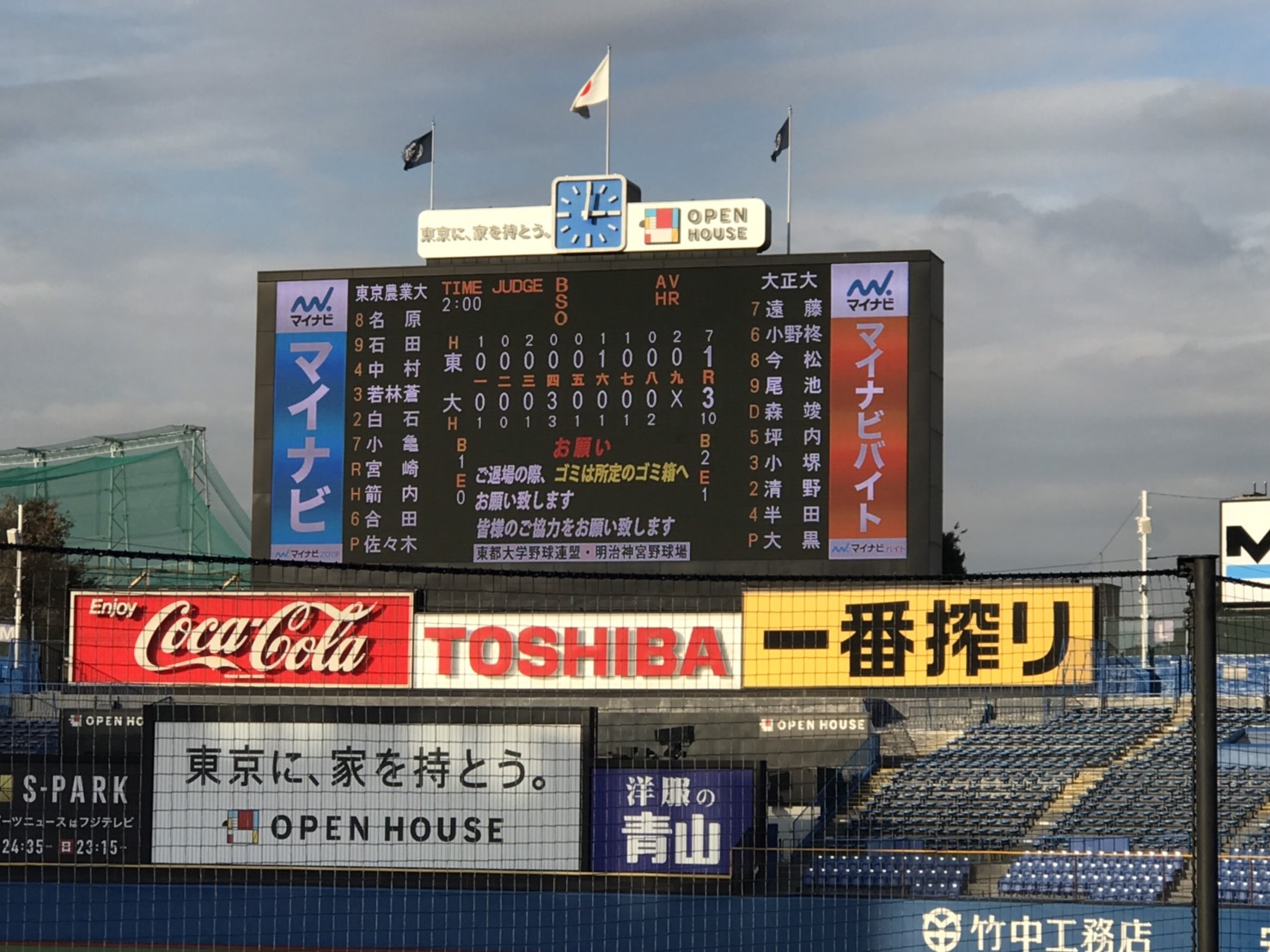 神宮球場で、東京農業大学と2部・3部入替戦を行います。