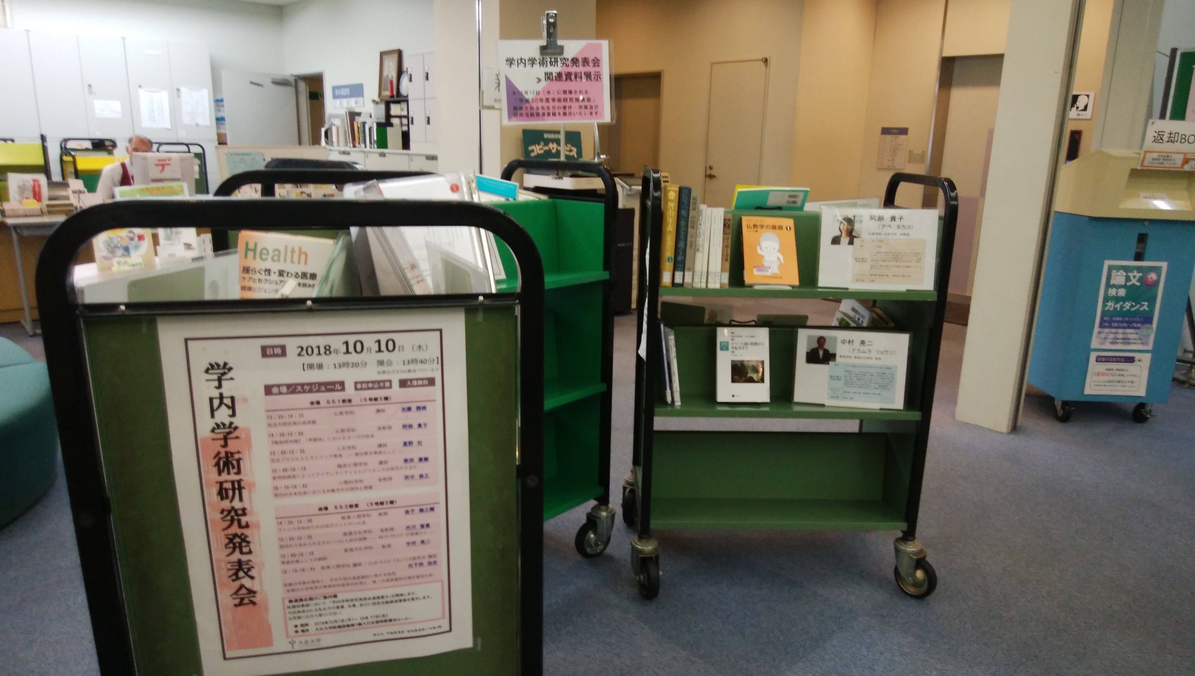 また、附属図書館において、10月17日(水)まで「学内学術研究発表会連携展示」を開催しました。