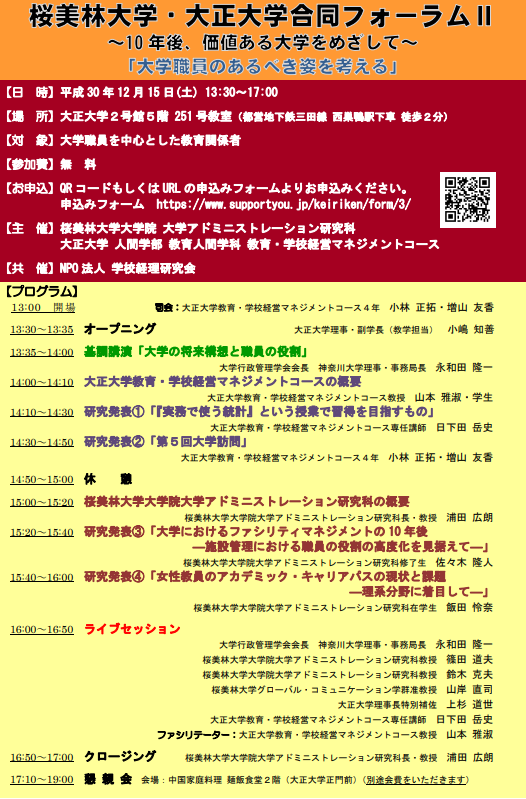 主 催:桜美林大学大学院 大学アドミニストレーション研究科
