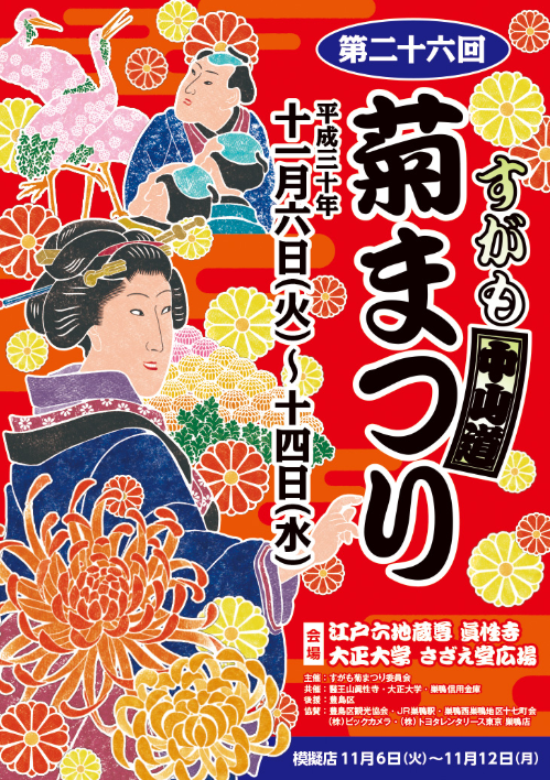 「菊まつり」は、江戸時代より園芸の里として親しまれてきた「巣鴨」の伝統文化を伝え残すとともに、街の活性化に繋げようと地元の商店会や町会が中心となって、平成5年から毎年11月初旬に開催しています。