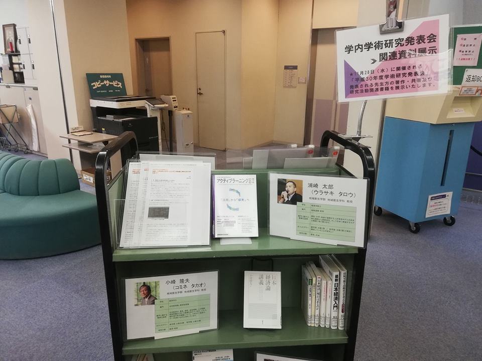 内容:『学内学術研究発表会発表者 関連資料展示』 期間:2018年11月19日(月)~12月7日(金) 場所:図書館1階 入口正面トラック