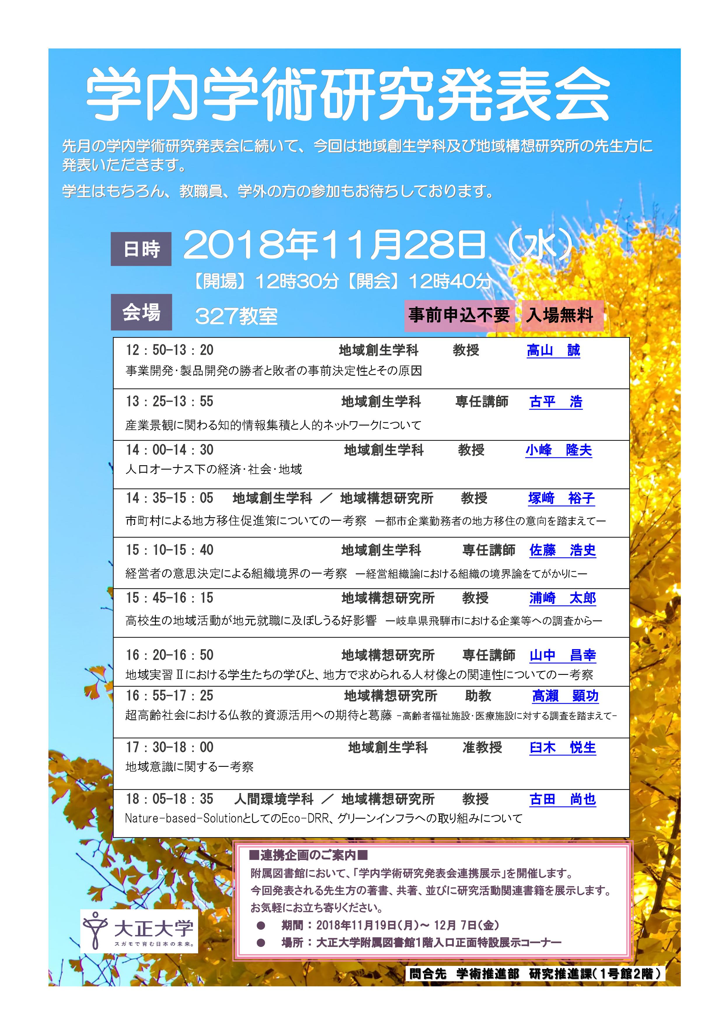 11月28日(水)に「平成30年度学内学術研究発表会」を開催しました。