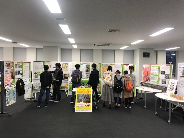 また、同フロアでは、人間環境学科の2年生がフィールドワークやビオトープの成果報告を、3年生有志が今夏行った国内希少野生動植物種のツシマシマネコの保護活動の活動内容を発表します。