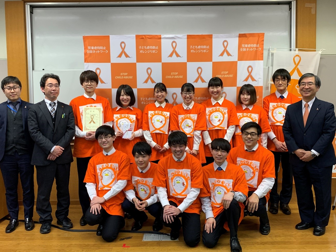 2020年2月16日に開催された「学生によるオレンジリボン運動の全国大会」(特定非営利活動法人 児童虐待防止全国ネットワーク主催)において、社会福祉学科2年生が2019年度の「オレンジリボン運動」の活動を報告し、特別賞「厚生労働省虐待防止推進室・室長賞」を受賞しました。