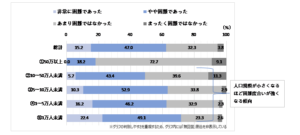 上記設問の中で、「策定に必要な人材(の確保)」が非常に困難であったと回答した自治体は15.2%(64件)であり、自治体の人口規模による差が最も大きく表れ、人口規模が小さくなるほど困難度合いが強くなる傾向がみられました。[図2]