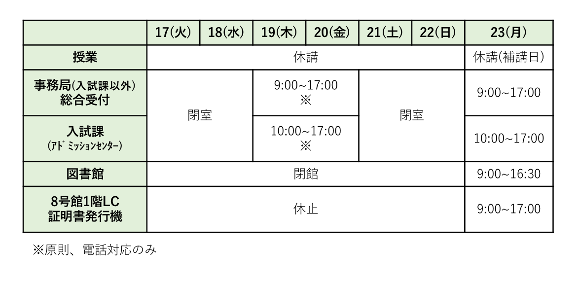 11月17日~11月23日の授業・窓口業務等の取り扱いについて