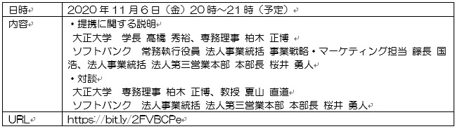 両者は、大正大学の教育に関する知見と、ソフトバンクのテクノロジーを活用し、学生の学び方改革や教員の働き方改革、地域活性化などに貢献する、新しい教育モデルの実現を目指します。