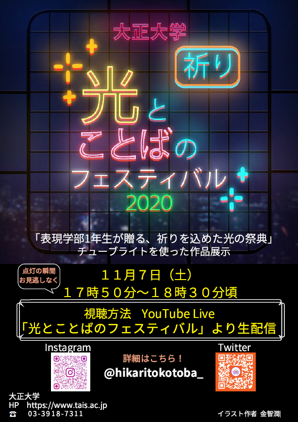 表現学部恒例の一大イベント『光とことばのフェスティバル2020~祈り~』がYouTubeライブにてオンライン開催されます。
