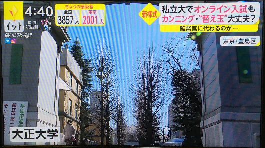 2021年1月15日(金)フジテレビ放送において、午前の情報番組「めざましテレビ」と午後の情報番組「newsイット」において、大正大学が実施したオンライン入試の取り組みが紹介され、導入を考えた時期や背景などを渡辺入試課長がインタビューに応えました。