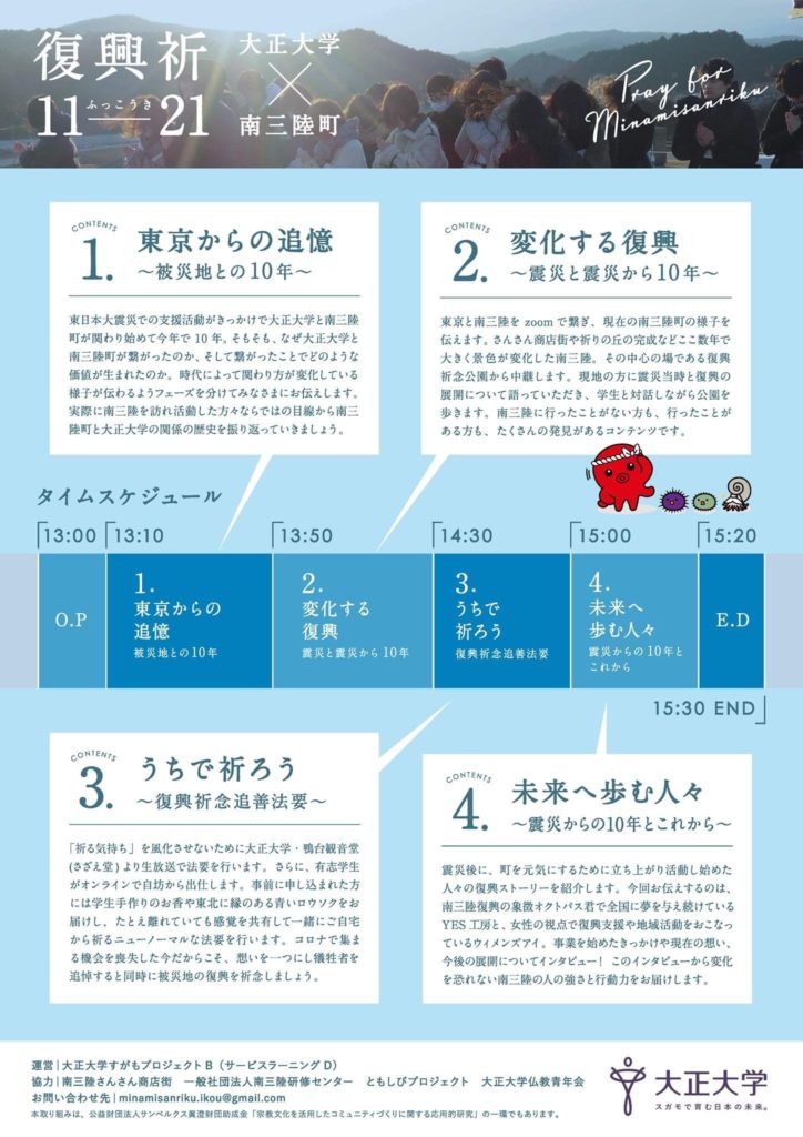 東日本大震災より10年を迎えるにあたり、2021年2月27日(土)13:00-15:30、YouTube Liveにて復興祈念追善法要「復興祈(ふっこうき)11-21」をオンラインイベントとして開催します。