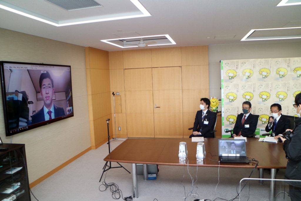 徳島県の阿南市が「総合計画2021▶2028」を策定するに当たり、計画書の表紙・裏表紙のデザインの募集を行い、須藤 剛志さん(地域創生学部2年)のデザインが優秀賞として見事採用されました。表彰式は2月17日(水)にオンラインで開催され、阿南市役所4階市長公室にて表原市長から須藤さんに賞状が授与され、副賞が贈呈されました。