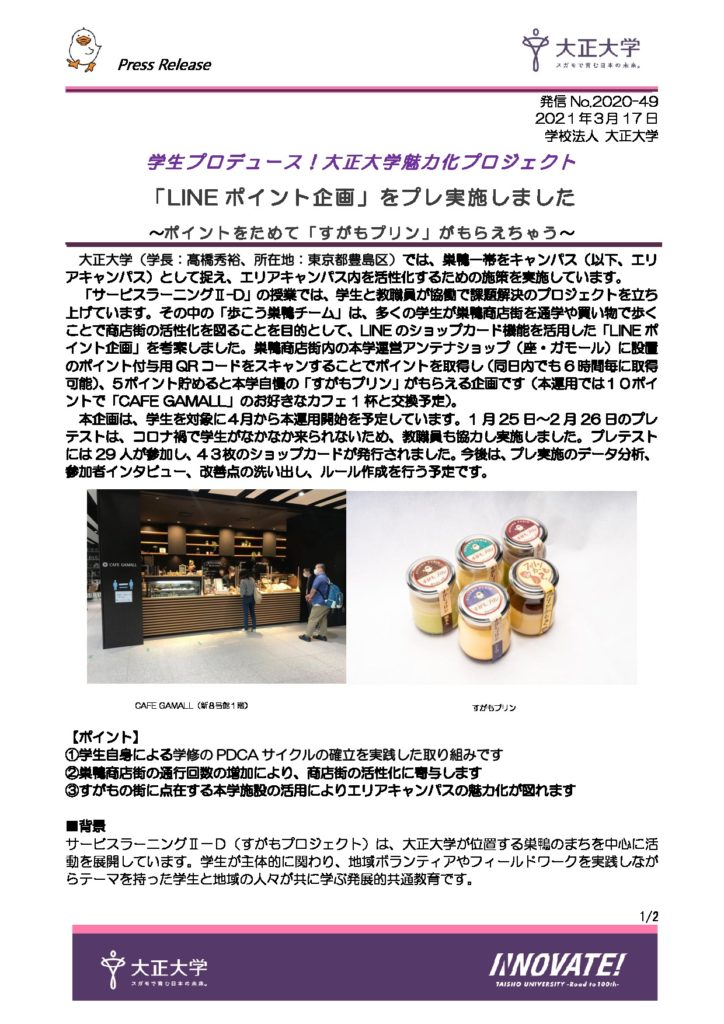 【プレスリリース】学生プロデュース!大正大学魅力化プロジェクト 「LINEポイント企画」をプレ実施しました ~ポイントをためて「すがもプリン」がもらえちゃう~