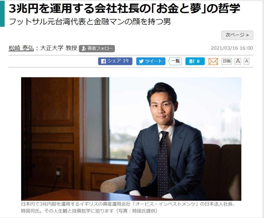 イギリスの資産運用会社「オービス・インベストメンツ」の日本法人社長、時国司氏の紹介記事を執筆しています。