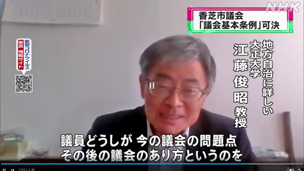 江藤俊昭教授(公共政策学科)が4月26日(月)に香芝市議会で制定された議会基本条例について取材を受け、地方自治に詳しい専門家として疑問点や改善点などの見解を述べました。