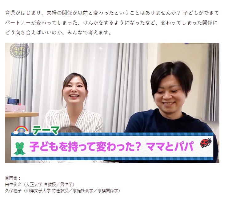 田中俊之准教授(人間科学科)が5月8日(土)放送のNHK「すくすく子育て」に出演しました。