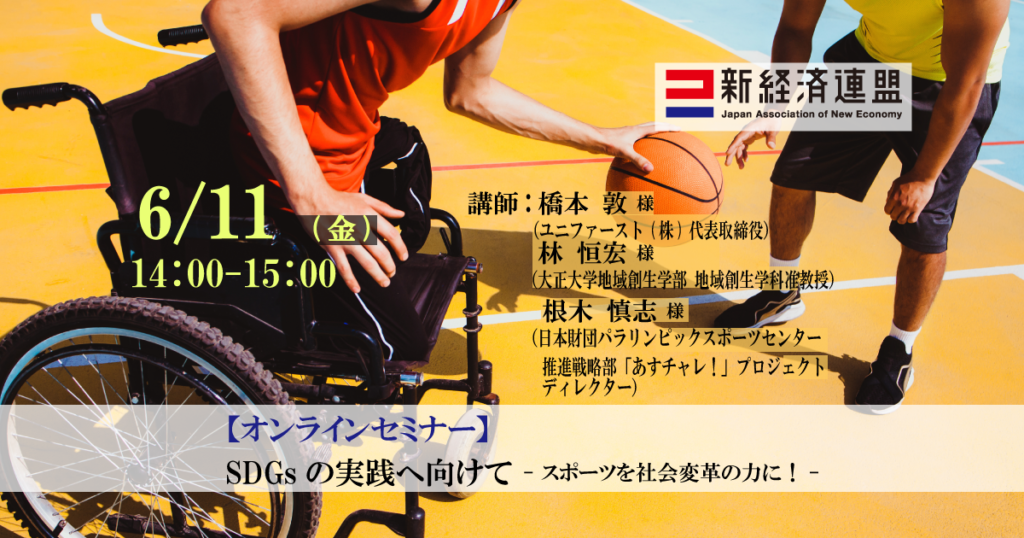 林恒宏准教授(地域創生学科)が2021年6月11日(金)に開催される新経済連盟主催のオンラインセミナー、「SDGsの実践へ向けて-スポーツを社会変革の力に!」(6/11)に登壇します。・開催日時:2021年6月11日(金)14:00~15:00