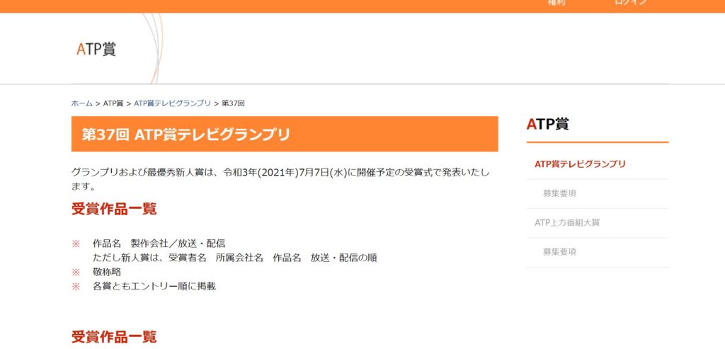 ▽第37回 ATP賞テレビグランプリHP