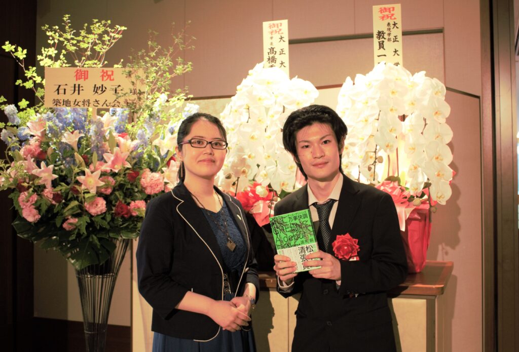 会場には、波木さんが松本清張賞を意識するきっかけを作った、本学の額賀澪客員教授もお祝いに駆け付けました。