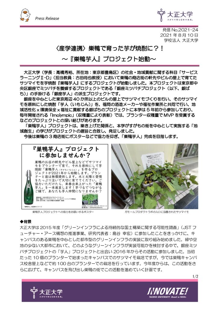 【プレスリリース】〈産学連携〉巣鴨で育った芋が焼酎に?! ~『巣鴨芋人』プロジェクト始動~