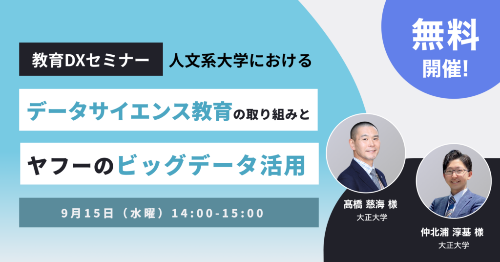 ヤフー株式会社(以下、Yahoo! JAPAN)が提供する事業者向けデータソリューションサービスは、9月15日(水)に教育DXをテーマにした教育機関向けのデータ活用無料セミナーを開催します。