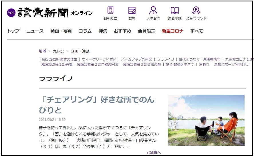 林恒宏准教授(地域創生学科)が、「密」を避けられる手軽なレジャーとして、人気を集めている「チェアリング」について取材を受け、読売新聞に掲載されました。
