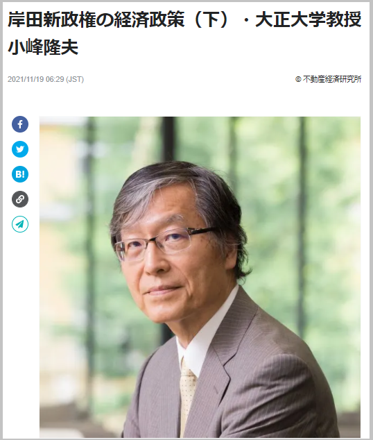 小峰隆夫教授(地域構想研究所)が住宅・不動産ニュース情報サイト「不動産経済オンライン」にて、「岸田新政権の経済政策(上)」と題し、岸田新政権の経済政策について自身の考察をコラム形式で連載しています。