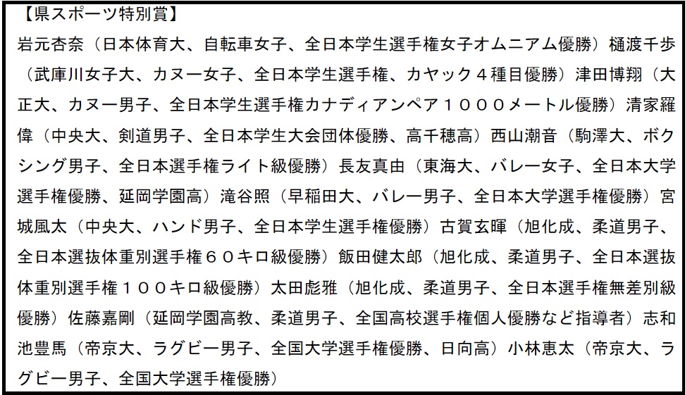 津田博翔さん(カヌー部、仏教学科3年)が、全日本学生選手権カナディアンペア1000メートル優勝などの功績を認められ、2021年度宮崎県スポーツ特別賞に選ばれました。