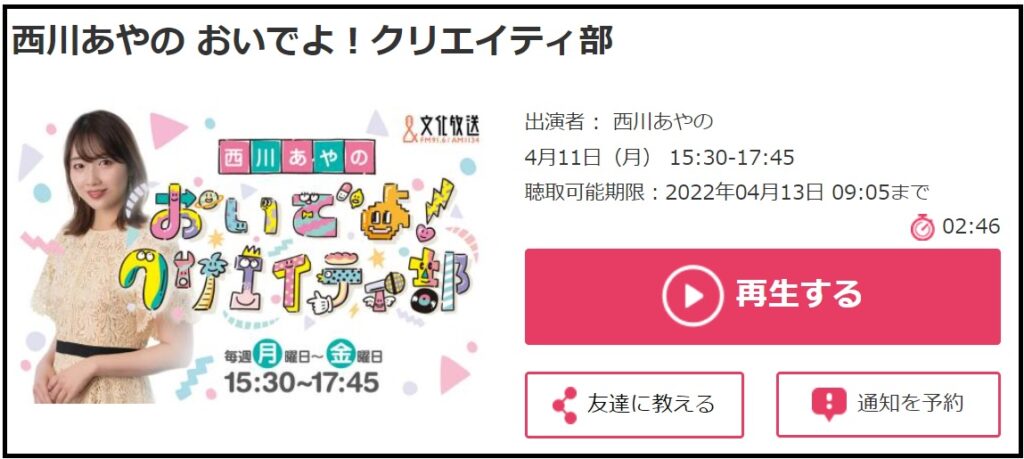 【メディア情報】4月11日(月)、「西川あやの おいでよ!クリエイティ部」(文化放送ラジオ)にて本学の取り組みが紹介されました