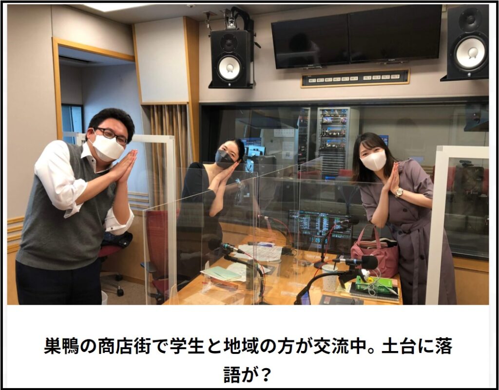 4月11日(月)15時30分から17時45分に放送される文化放送ラジオ「西川あやの おいでよ!クリエイティ部」にて、座・ガモールをはじめとする本学とすがも商店街との取り組みが紹介されました。
