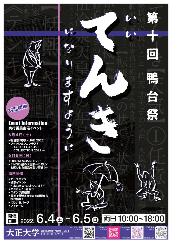 6月4日(土)・5日(日)、第10回鴨台祭を3年ぶりに対面形式にて開催します。