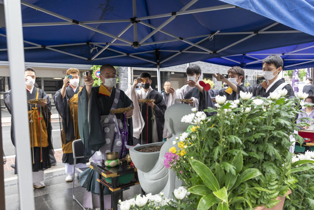 花まつり特別法要、種子地蔵開眼式では、仏教学部の塩入法道教授が導師を、式衆は本学の各宗学生が務め、執り行われました。