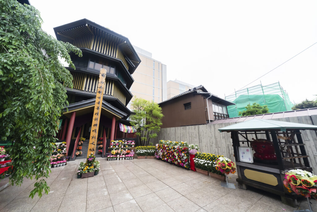 すがも鴨台観音堂(鴨台さざえ堂)頂上階に安置されている、聖観自在菩薩(すがも鴨台観音)前も季節の綺麗なお花で飾られていますので是非お近くにお越しの際はお立ち寄りください。