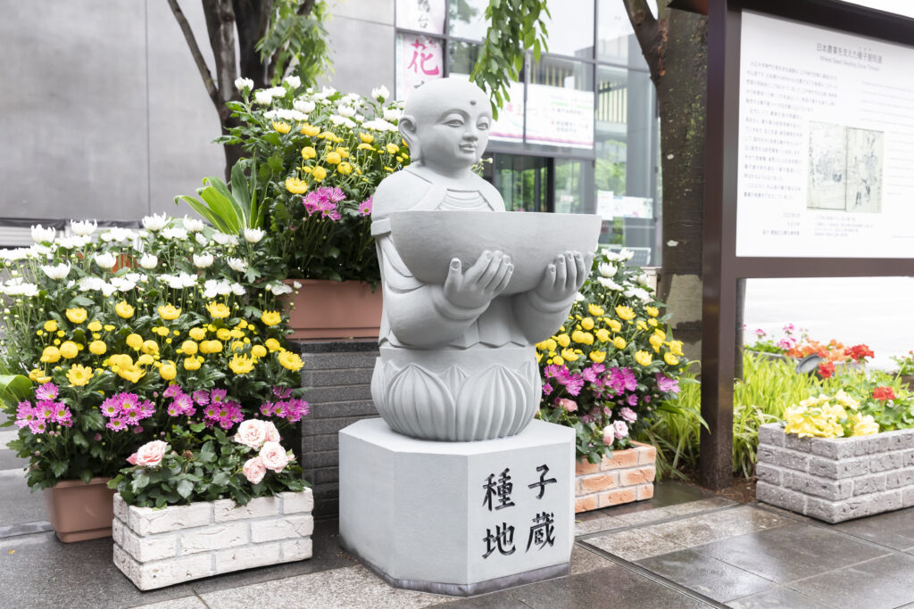 「種子地蔵」は、「種子屋通りとしての巣鴨」の歴史や文化の認知復活、「伝統野菜」を通した交流や教育、観光資源としての活用に取り組んでおり、「サービス ラーニングⅠ-D」の一環として南門広場に建立されました。