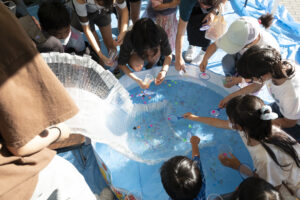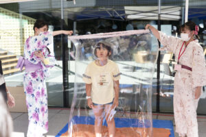 「第12回 鴨台盆踊り」では、「子どもの笑顔を取り戻す」を目標に、遊びやワークショップなどの子ども向け屋台の充実させました。また、近年本学が力を入れている高大接続に関して、実質的な高大接続の初の試みとして、高校生も参画して学びの成果を出展しました。